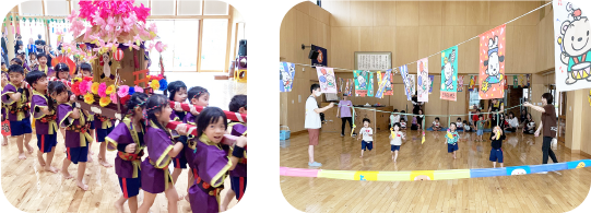 | 7月 | 夏のお楽しみ会・七夕まつり、プールあそび、 個人懇談(5歳児) |